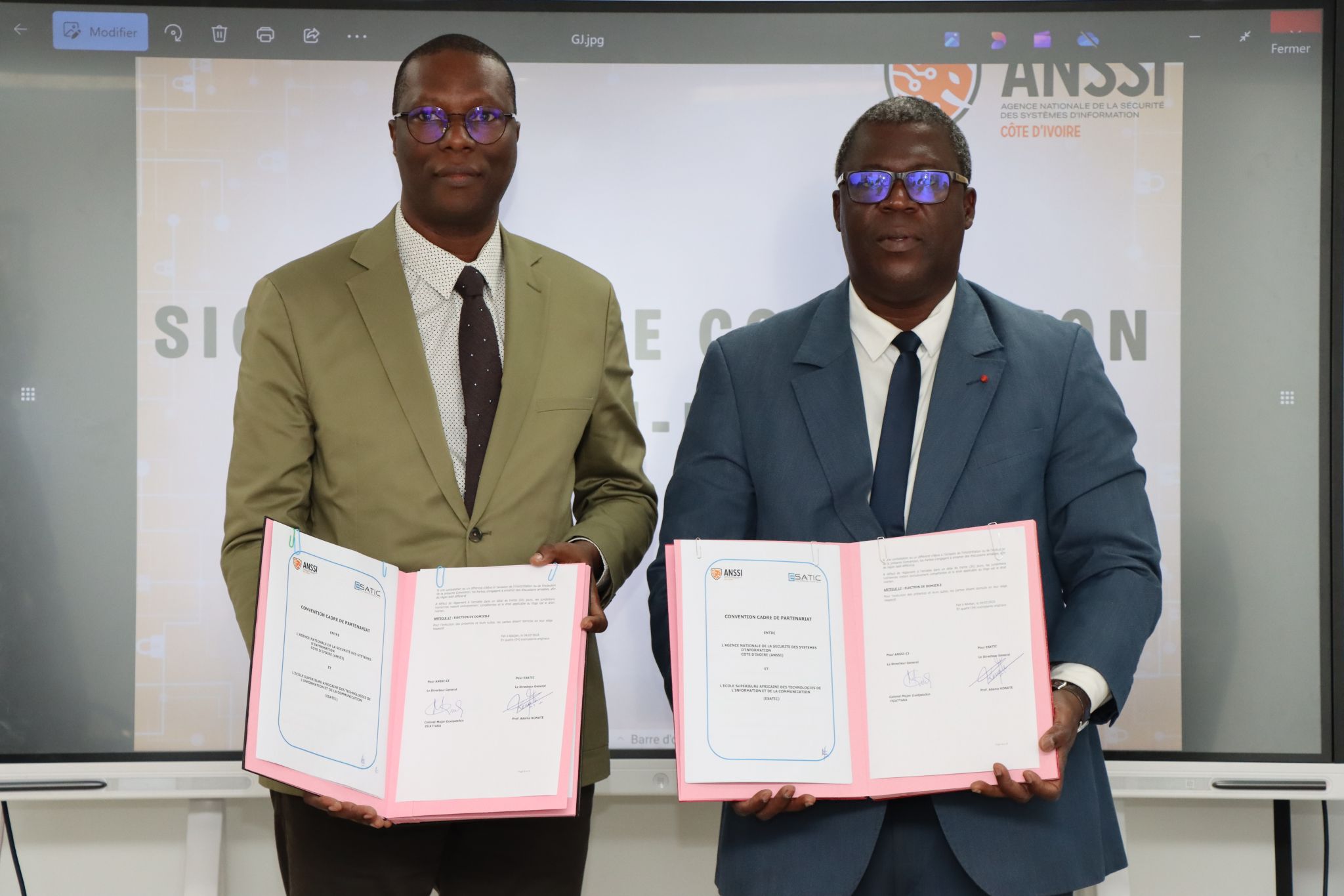 C’est sous la houlette du Colonel‑Major Guelpétchin OUATTARA pour l’ANSSI et du Professeur Adama KONATE pour l’ESATIC que les deux institutions ont signé ladite convention d’accord. Il faut rappeler que cette convention s’est opérée suite à la visite du 09 avril 2025 dernier. Une visite au cours de laquelle la délégation de l’ANSSI-CI a découvert les laboratoires et les infrastructures de l’ESATIC. Par ailleurs, les échanges avaient alors porté sur la mise en place de modules de recherche communs, de simulations de gestion de crise et de programmes de mentorat, avec pour objectif de renforcer la cyberrésilience nationale.