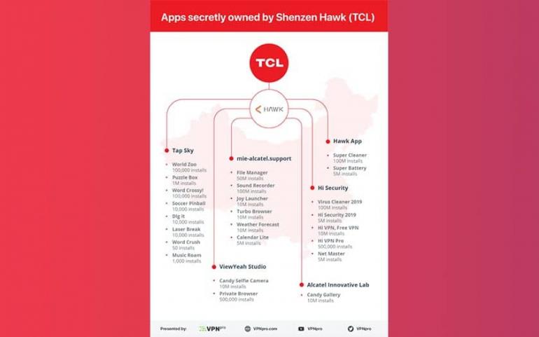 Selon VPN Pro, les 24 applications ont été développées par quatre développeurs chinois appartenant à Shenzhen HAWK Internet Co, une entreprise basée en Chine et détenue par le groupe TCL. Le rapport accuse la firme de placer délibérément des malwares publicitaires ou espions dans ses applications. « Elles demandent aussi une énorme quantité d’autorisations dangereuses, mettant potentiellement en danger les données privées des utilisateurs » explique VPN Pro.