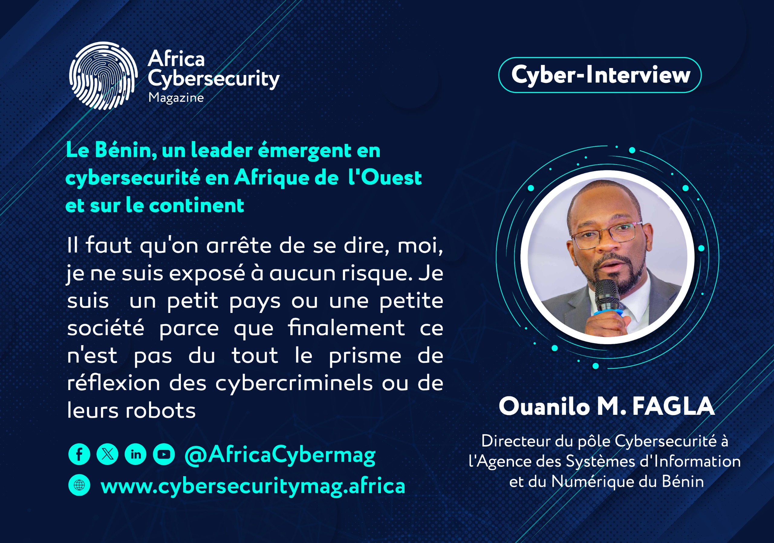 “ Il faut qu'on arrête de se dire, moi, je ne suis exposé à aucun risque. Je suis un petit pays ou une petite société parce que finalement ce n'est pas du tout le prisme de réflexion des cybercriminels ou de leurs robots”. Ouanilo Medegan FAGLA