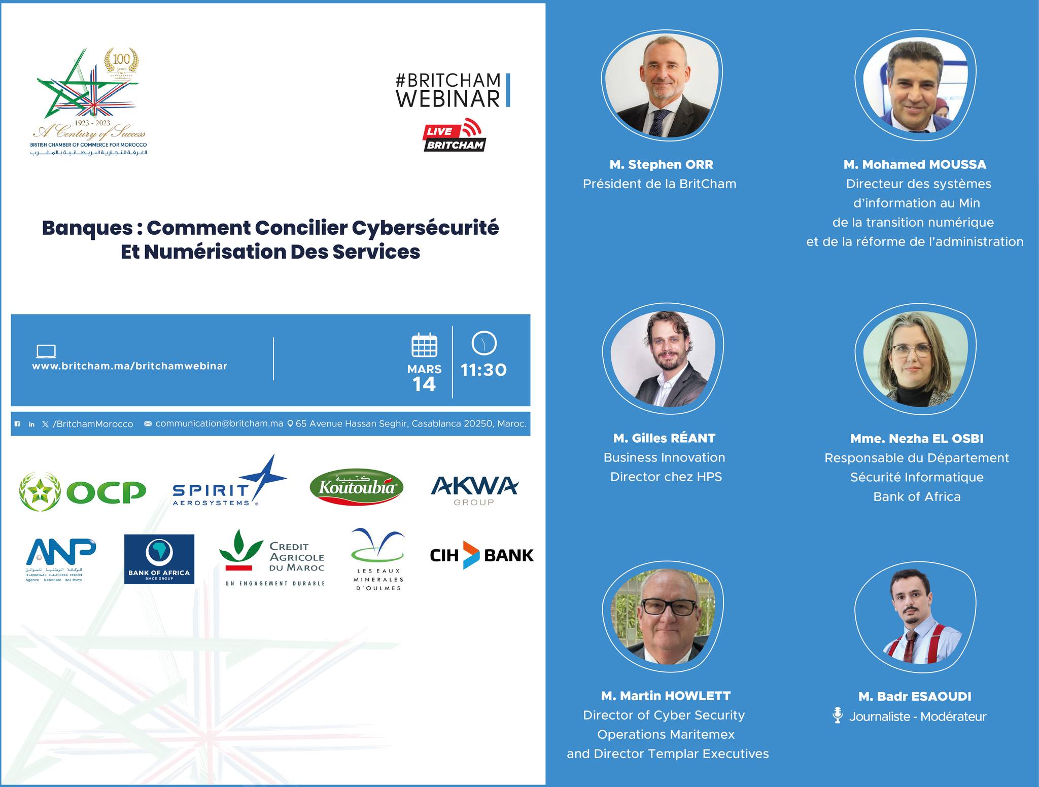 Lors d'un webinaire organisé le 14 mars 2024 dernier par la Chambre de Commerce Britannique pour le Maroc, M. Mohamed MOUSSA, Directeur marocain des systèmes d’information a souligné l'urgence pour les banques d'investir dans des solutions de sécurité robustes pour se prémunir contre les cyberattaques.