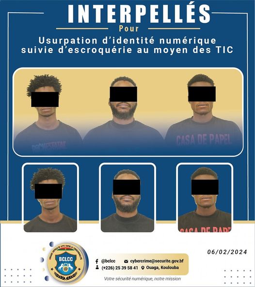 Dans une nouvelle opération mardi 06 février 2024, la Brigade de Lutte Contre la Cybercriminalité (BCLCC) a réussi à mettre aux arrêts trois individus de nationalité étrangère et résidant à Ouagadougou. Ces présumés cyber escrocs, âgés de 22 à 32 ans, sont accusés d'avoir orchestré des escroqueries en ligne sophistiquées à travers des faux profils Facebook.