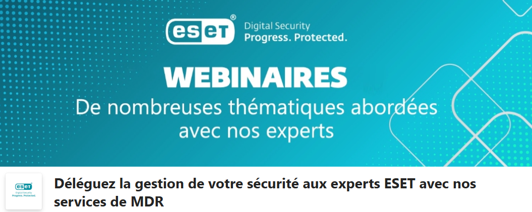 ESET convie les responsables de PME à un webinaire exclusif le 30 septembre 2025 à 10h 00. Ce webinaire sera consacré à son service de Managed Detection and Response (MDR), une solution spécialement pensée pour les petites et moyennes entreprises.