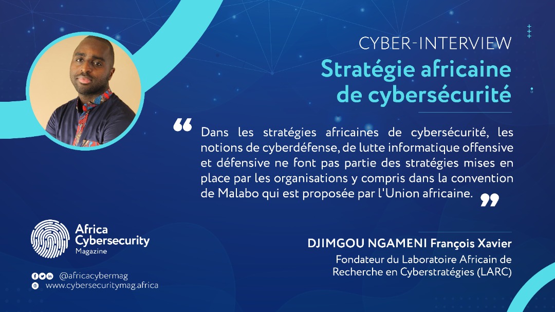 Dans ce Cyber-Interview accordé à Africa Cybersecurity Mag, François Xavier DJIMGOU NGAMENI du LARC (Laboratoire Africain de Recherche en Cyberstratégies) fait un décryptage d’expert de la stratégie africaine de cybersécurité et nous fait une vue d’ensemble du LARC. Cette interview assez particulière est très intéressante tant sur les questions qu'elle aborde que sur le fond des réponses de notre invité.